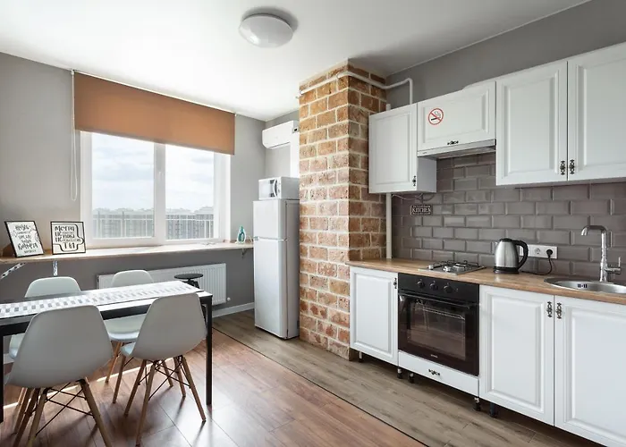 В цьому помешканні є повністю обладнана кухня з чайником і духовкою. Доїхати до Міжнародного аеропорту "Київ" можна за 15 хвилин.